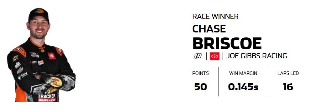 Chase Briscoe wins at Talladega !! And here are the top 5 charts for the week ! Only 2 more races left in the season – best of luck to all !