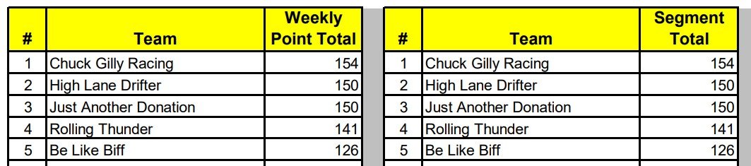 Now as far as racing – Sorry for the delay in posting this … Jeff shared the scoring with me Sunday morning, but I never saw it until later in the day… So here is Week 1 Daytona, and Week 2 will follow soon.